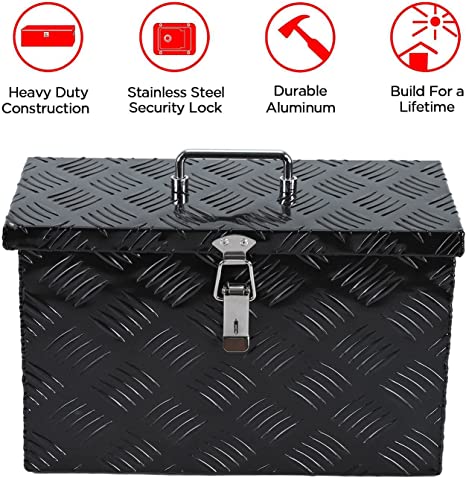 【Vantagem】A porta possui um lábio saliente que resiste à entrada de água. A porta dobrável fornece acesso total. O bloqueio embutido garante que todos os itens sejam mantidos seguros e protegidos. Esta caixa de ferramentas de alumínio é perfeita para armazenar suas ferramentas em seu veículo ou em casa.