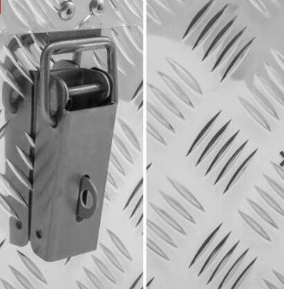 Caixas de ferramentas soldadas de alumínio são feitas de placa de verificação de alumínio de alta qualidade processada. A espessura da parede de nossas caixas é de perfil de 2.0 mm (não inclui a altura do padrão). Todas as nossas caixas de ferramentas podem ser fornecidas com os respectivos suportes roscados na parte inferior, de modo que a fixação das caixas na caçamba do caminhão é possível sem problemas. As caixas de ferramentas são devido às vedações montadas na tampa à prova de poeira e chuva. As dobradiças e fechos de bloqueio são de aço inoxidável. As alças de mola à direita e esquerda da caixa são feitas de aço inoxidável com revestimento plástico para maior conforto.