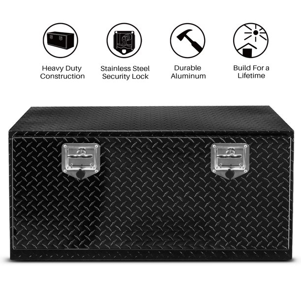 Nossa caixa de ferramentas foi projetada para economizar espaço e fornecer armazenamento extra sob a caçamba do caminhão. Esta caixa de ferramentas é construída em alumínio texturizado para máxima durabilidade. A porta é reforçada com uma vedação resistente às intempéries para manter suas ferramentas e itens secos e seguros. A porta dobrável fornece acesso total. O cadeado embutido garante que todos os itens sejam mantidos seguros e protegidos. Esta caixa de ferramentas sob a carroçaria em alumínio é perfeita para guardar as suas ferramentas no seu veículo ou em casa.